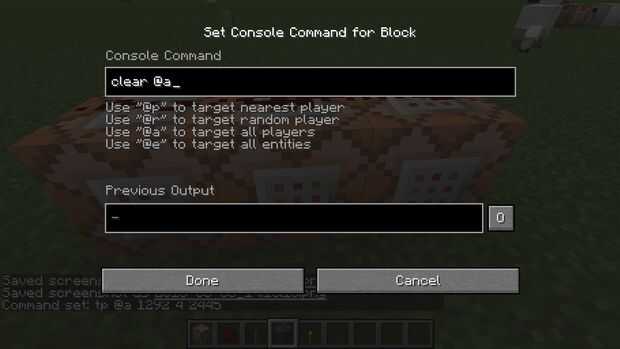 para el segundo bloque de comando utilizaremos un comando que se borrará el inventario de los jugadores especificados. claro