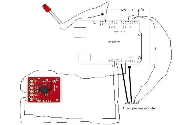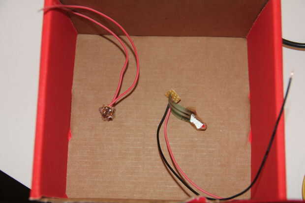 Cableado para este proyecto es muy simple. He incluido el esquema para el cableado. Lo único que dejé hacia fuera fue el clip de batería de 9v que a soldado en a los terminales de alimentación de Arduino. Usé la placa para construir el pequeño circuito con la resistencia del interruptor. (En el esquema, lo tengo simplemente muestra ya un cable en el otro medio es fácil dibujar pero no se que hacer realmente.) Para referencia, el LED está conectado al pin digital 13 porque tiene una resistencia incorporada.