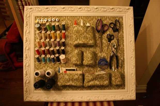 Tomé mi inspiración desde la estación de costura montado en la pared aquí: