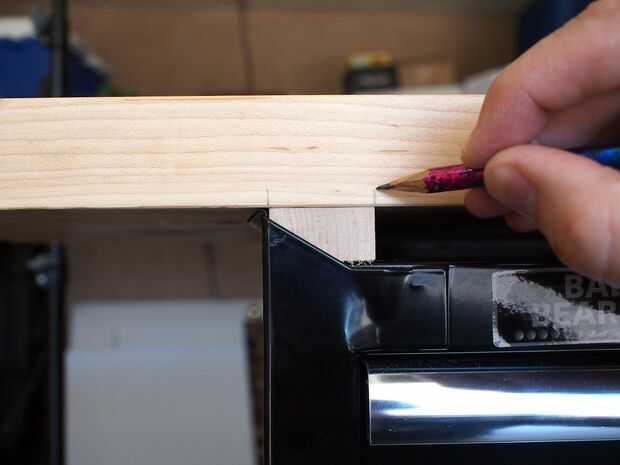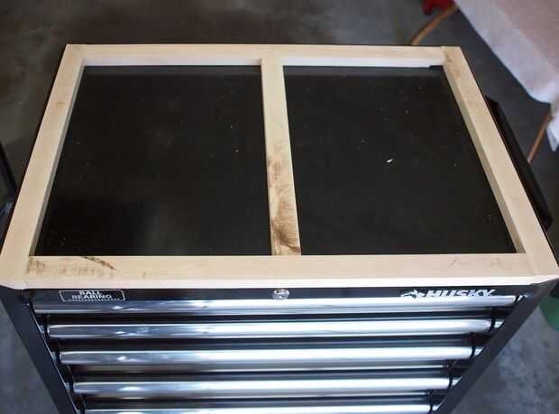 Este marco fue hecho con retales de arce que la superficie de trabajo. Me mide el interior de la parte superior sucesiva de pecho de herramienta y cortar tiras para emparejar. Cada pieza se muele a la misma altura que el interior de la brida, que forma la superficie de trabajo puede estar en la parte superior del reborde, nivel con el marco de madera.