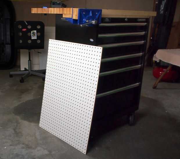Para todas las otras herramientas quiere todo, pero no caben en los cajones o en la rejilla magnética, hay un tablero de clavija para colgar cosas.
