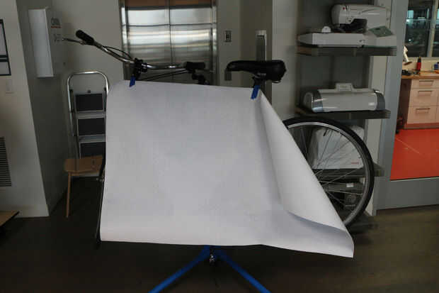 Había suspendido un pedazo grande de papel de patrón de mi bici y cortar los pedacitos que encajaban el marco para que iba.