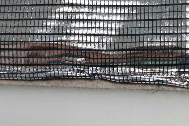 Usando una máquina de coser de alta resistencia, inmovilizados de la costura de la tela del DISCO para el fieltro y trabajó a máquina el borde.
