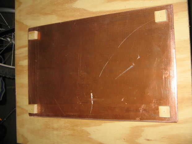 Luego marcaron los pies en el centro y había marcado de la superficie de cobre 1" de las esquinas utilizando un cuadrado de carpinteros.