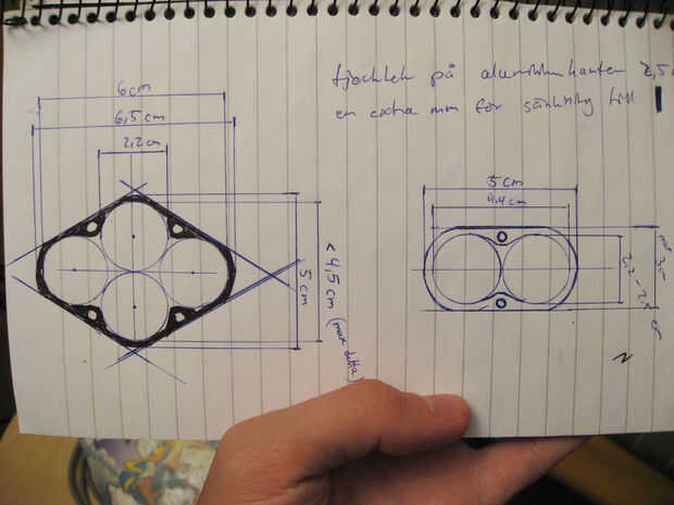 mis reflexiones sobre el diseño fue que debe ser lo más pequeño posible, pero con suficiente aluminio alrededor de la LED´d para llevar el calor. Y para conseguir un diseño que ya no está en el mercado no está mal tampoco. : D
