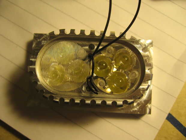 Traje casero lo LEDs y probarlo pronto. Y afortunadamente, los LEDs son un ajuste perfecto. parece ser bastante brillante también.