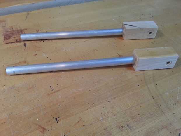 Dos 9" piezas de 1/2 barras de aluminio que se insertan y pegan a dos bloques de madera.