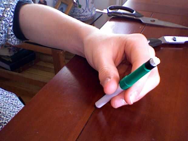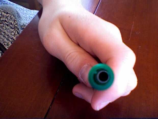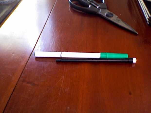 7: si es necesario, puede ampliar el orificio de la tapa de la pluma con la parte delantera del lápiz. (no presione demasiado y romper la tapa.)
