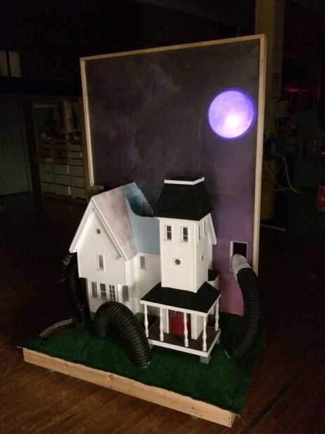 - Antes de encolar los fondos, tengo la idea de iluminar la luna en la parte delantera y en la parte posterior. Usé un router para crear un bolsillo de inserción para una pieza de plexiglás de 1/8". Foto-compraban mis antecedentes para que las lunas se alineen con el corte redondo en la parte trasera. Entonces uno de mis luces de tienda de dólar había unido a una longitud de conducto galvanizado.