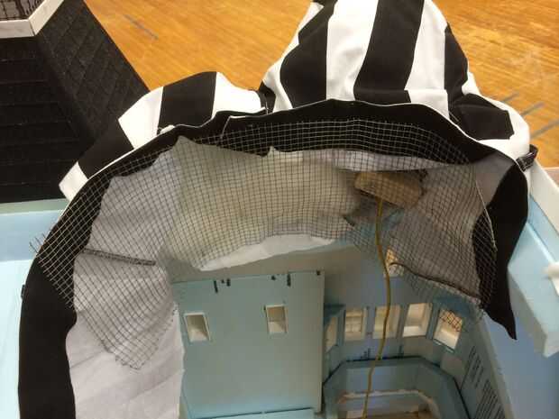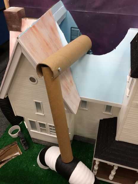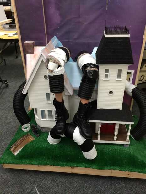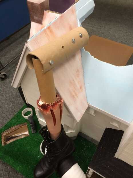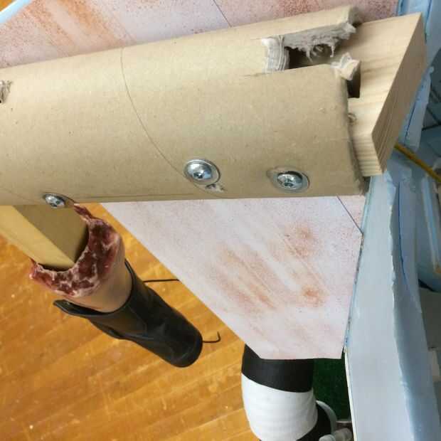 - Utilizado tubos de cartón para cubrir las piernas. Son relativamente ligeros y estructurales al mismo tiempo. Algunos pernos perforados a través de ataré los muy bien a la casa.