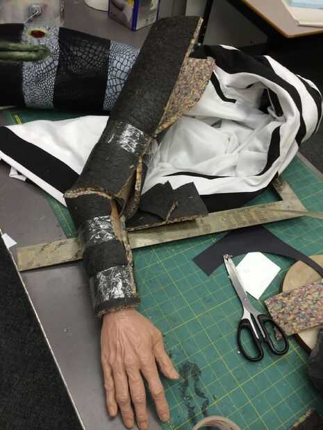 Con las piernas en su lugar, simplemente debían adjuntar mi títere a la chaqueta. Para ello, corte un orificio en la axila de la chaqueta y básicamente había pegado el muñeco en su lugar. Usé algunos tubos de cartón más y una dólar falso tienda a mano para completar el brazo falso. Cuando algunos de los custodios en la escuela (llega a ver el proceso entero) vio esta ilusión por primera vez, se sorprendieron en lo real que parecía a pesar de que de nuevo mi brazo dentro el gusano de arena.