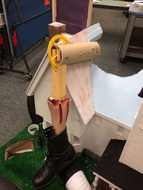 - Un simple pedal con bisagras, un engranaje de k'nex y un alambre proporcionan los medios mecánicos para subir y bajar la pierna. Cuidado chicos, esta bota tiene un nivel inadecuado de patadas altura.