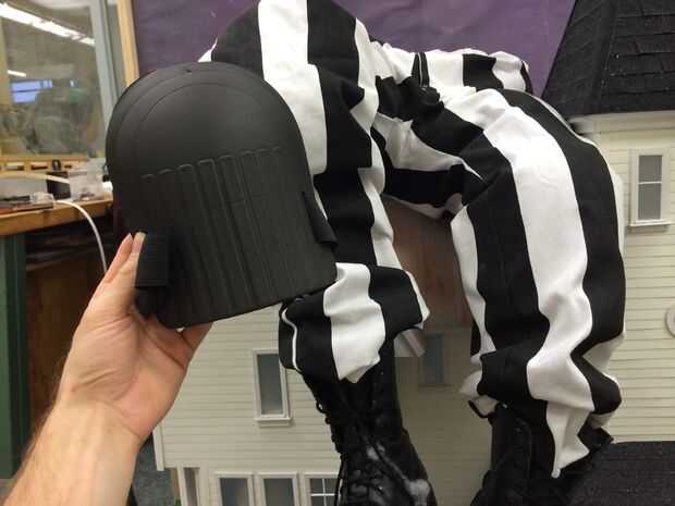 - Asegúrese de que tiene cosas de imitación-para arriba perfectamente. Necesitaba cortar los pantalones de mis pantalones de beetlejuice caro y sólo tenía un disparo en hacer derecho. Este significado de vestirse y desnudarse esas piernas de tubo de cartón plástico falso demasiado muchas veces