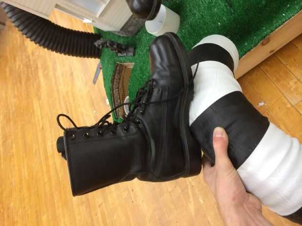 - No es necesario, pero me gusta usar patas de apoyo de Halloween falsas para llenar mis botas