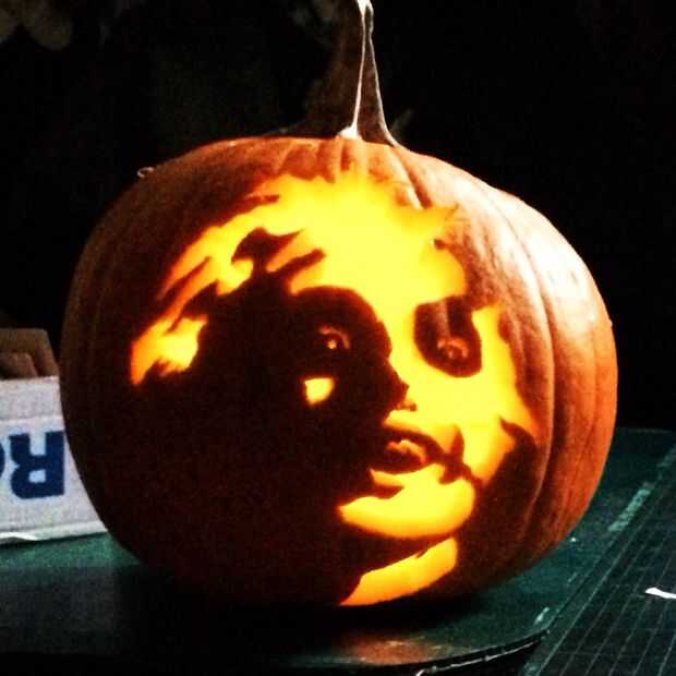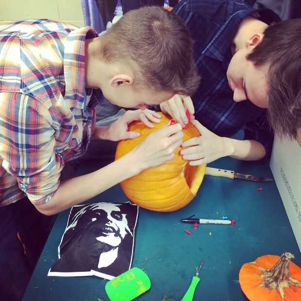 • Si tienes tiempo, tallar una calabaza que coincida con el tema de tu disfraz. Hice una lección rápida de talla para un par de mis alumnos interesados. Chicos buen trabajo!