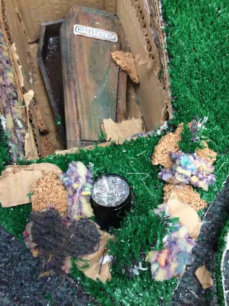 Con la mayoría del traje completo, pude completar algunos de los detalles de terminación que solo necesitan un poco de tiempo y no una porción entera de averiguar. Esta fabricación incluido el gusano de arena parecen buceaba dentro y fuera de la tierra, iluminación, colocación de figura de acción, un poco de pintura y más musgo.