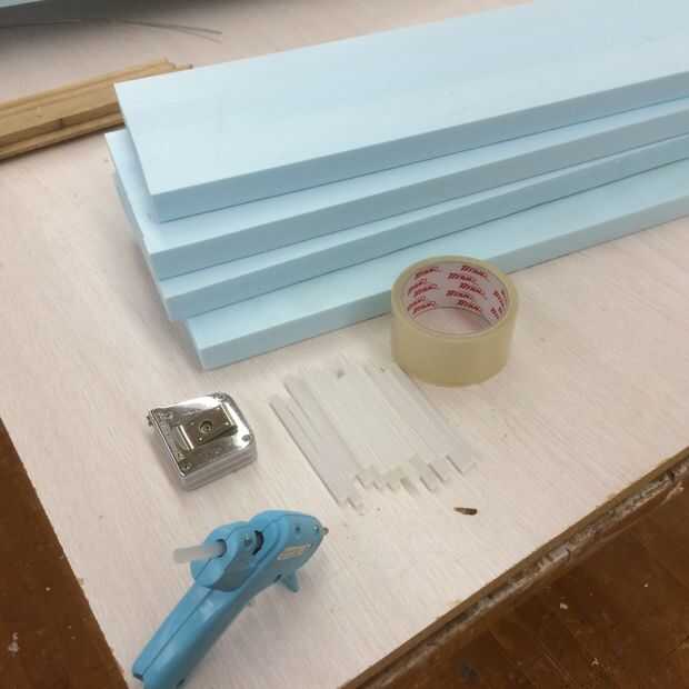 - También he encontrado cinta de embalaje a ser útil para la conexión de los paneles, sin embargo a veces se torna en la forma más adelante cuando desea pegar cosas a la espuma azul sí mismo.