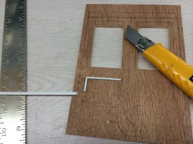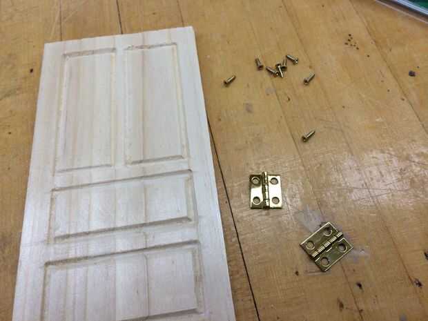 • La puerta se podría hacer cualquier cosa realmente... la mejor opción es algún tipo de madera contrachapada de 1/4". Esto parece coincidir con la escala correcta