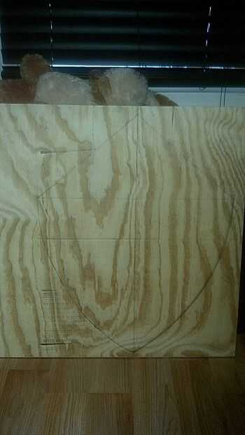 Fui con un 2'x 2', madera contrachapada de roble de 1/2". Entonces sacó un 18" ancho de 21,5" de alto diseño de escudo de calentador básico.
