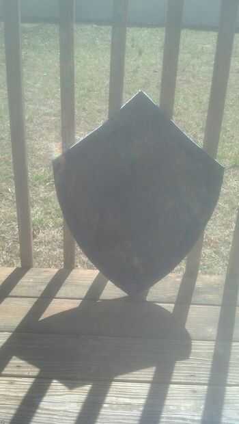 Bueno, hoy les voy a mostrar cómo hacer una buena mira Hylian Shield (+ espada) de Zelda por menos de 15$. Comenzaremos con un vistazo sobre el material a utilizar:2 hojas de espumaRotuladorPapelExactoPeso pesado (u otros objetos pesados)PinturaAguaT
