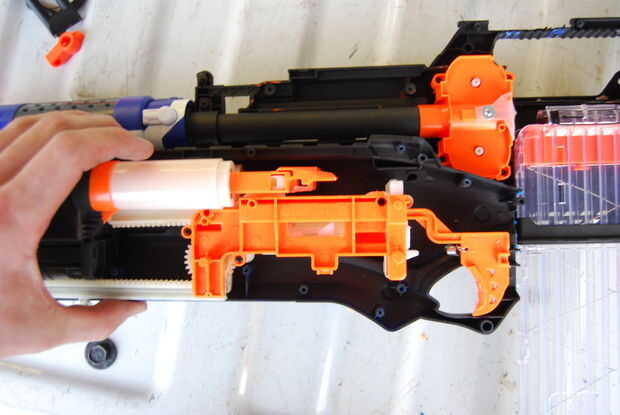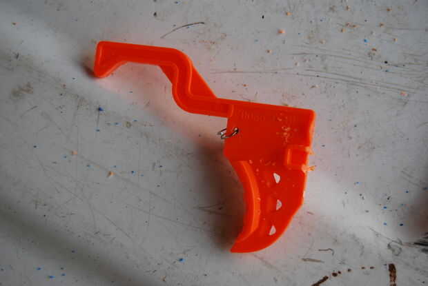 Nota: También deberás recortar la parte posterior del disparador para el roughcut. Puede fijar el mecanismo para un slam-fuego solamente y acortar la longitud total, o puede dejar el gatillo para disparar a su propia voluntad.