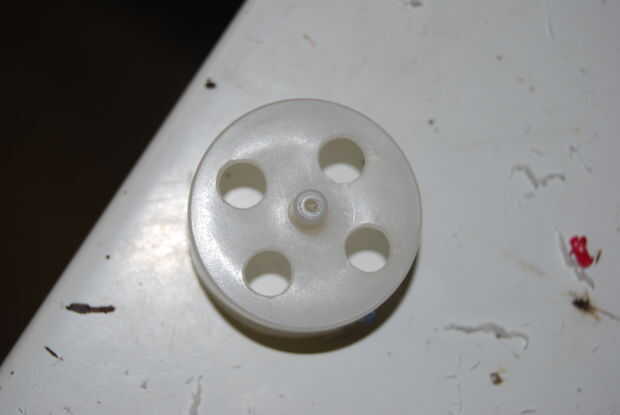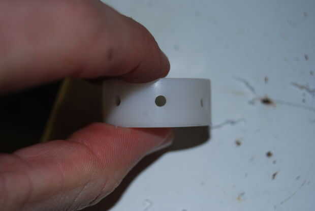 He decidido aligerar los volantes y añadir puntos de tracción para los dardos. Lo hice a través de taladrar cuatro orificios en la parte superior y ocho en los lados. Asegúrese que no hay rebabas a ambos lados. Los agujeros en la parte superior son 5/16" y los lados are1/8". Si no sabes cómo hacer plástico entonces no lo hace.