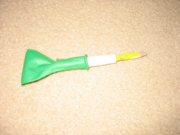 Lápiz Inserte y Pull Back y Let Go hacer seguro de que su mano es mantienen el globo en el tubo (Recuerde al tirar el balón para asegurarse de que todavía tiene el globo en la mano).