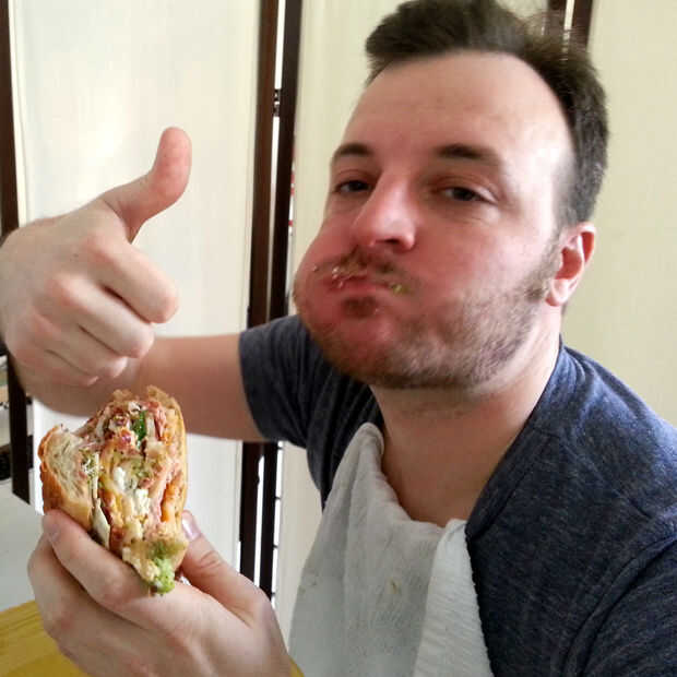 Comenzó con grandes mordidas, entonces decidí frenar y tomó un pequeño descanso... gran error. Con sandwich y huevo todo mi rostro, esta rotura de masticando casi me hizo desmayar en mi plato. Pero esto no le suceda, que eres un campeón; eres muy inteligente dejar su maratón chew-fest. Tiempo de siesta es para después.