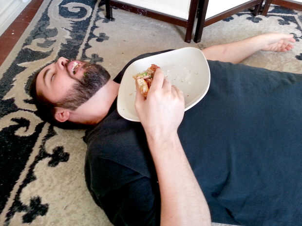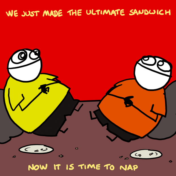 Stumpchunkman parece que han pasado hacia fuera en el piso de la genialidad de su mitad del sándwich. De alguna manera, despertó para terminar su medio delante de mí.