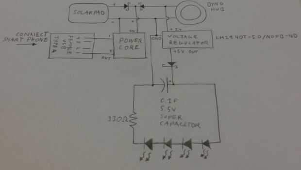 Simplemente fije el átomo de SivaCycle a la rueda trasera y conecte a la rejilla trasera solar. Tuve que quitar la batería de SivaCycle porque no funcionaría en paralelo con la batería de mi núcleo de poder. Mi alimentación hace un mejor trabajo con la administración de subidas hasta 1,3 amperios a la batería de almacenaje y la capacidad de pasar el exceso de energía a través de al dispositivo USB. He utilizado un cargo médico que compré de Adafruit para medir la potencia de salida - http://www.adafruit.com/products/1852