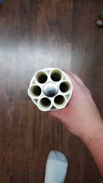 Inserte el tapón del orificio en el orificio central para mantener a la gente de jamming dardos en él. Este paso no es necesario, pero se ve cool. Si no conecta el agujero central, alguien empujar un dardo allí, presionar el restrictor de aire fuera del camino. Usted podría llenar con pegamento caliente o algo, pero esta manera es removible si necesita hacer ajustes.