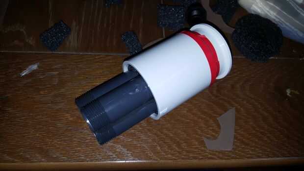 Inserte el reductor buje a medio camino, dejando espacio para el restrictor de aire trabajar. Envuelva la costura en cinta aislante.