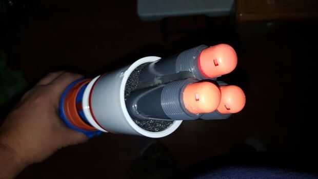 Enrosque el conjunto en su blastzooka y el fuego. Usted puede esto el completo de 8 bombas de la bomba y es super potente. Es muy satisfactorio ver un 3 mega explosión de dart en acción. Dispara 3 dardos todos simultáneamente con la misma fuerza (o más) que una pistola de dardos mega estándar.