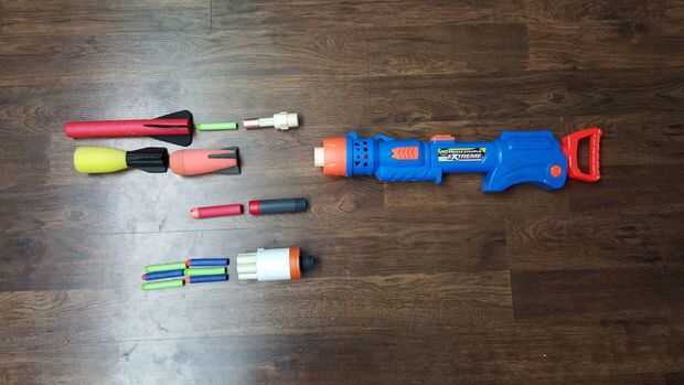 Ahora tienes un blastzooka super potente con múltiples tubos removibles. Este blaster tiene una baja tasa de fuego y munición baja capacidad, pero es incrediblyl potente y un montón de divertido de jugar con. El accesorio de escopeta elite es por lejos mi favorito. Yo espero que esto ayude, si no estás claro en algo, comentario y voy a intentar ayudar.