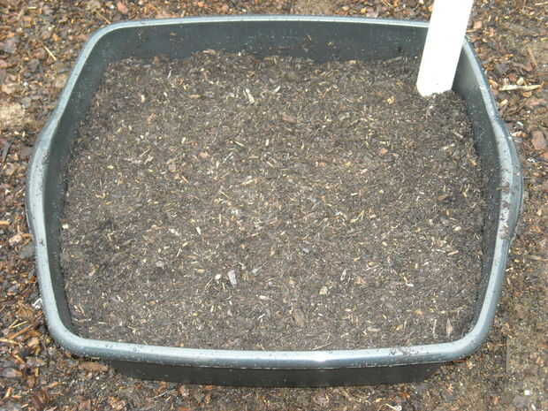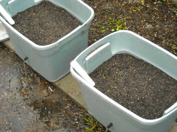 Para las cajas grandes la tome 1 pies cúbicos de tierra que significa añadir ahora una bolsa entera de 1 pie cúbico y para las cajas más pequeñas sólo se necesita 1/4 pies cúbicos.