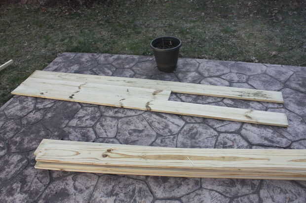 Con el tamaño especificado imaginó los cortes necesarios y planeó hacia fuera la cantidad de madera necesaria. Soportes verticales también se necesitarían aproximadamente cada 3 pies para evitar que la madera arquear hacia fuera y a los tres niveles de tableros. Por lo tanto terminamos necesitando (15) 1,25 "x 6" x 8' y (3) 1 "x 1" x 8' piezas de presión de madera trataron.
