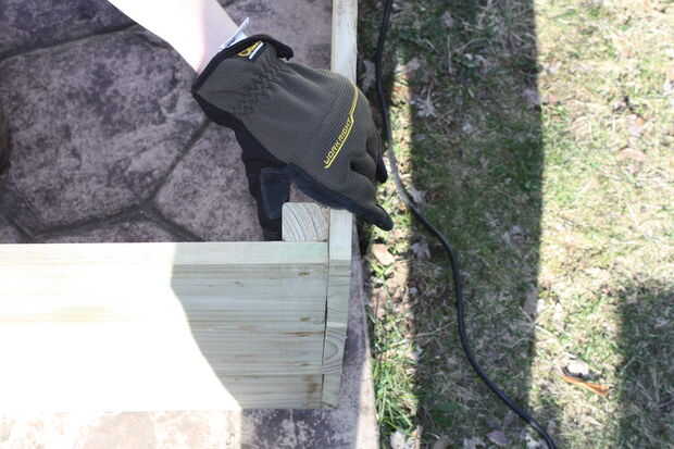 Una vez que las partes se reunieron individualmente nos trasladamos a todo lo sobre una superficie plana para montar la caja. Los lados cortos entonces se tope contra los laterales en ángulos de 90 grados, perforan, luego atornillan utilizando que el final 1 "x 1" apoya sobre el lado largo.