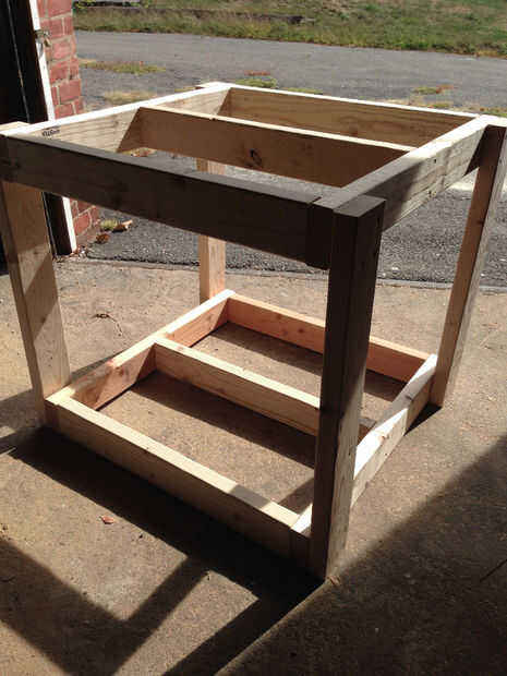 Esta mesa de trabajo sólo será tan sólida como su fundación, por lo que va construyendo una estructura de 2 x 4 que servirá como el esqueleto para el UMW. Construiremos dos piezas idénticas que se servirá de las caras superior e inferior del marco y luego coloque los dos junto con soportes laterales. Aquí están los cortes de 2 x 4 que necesitarás: