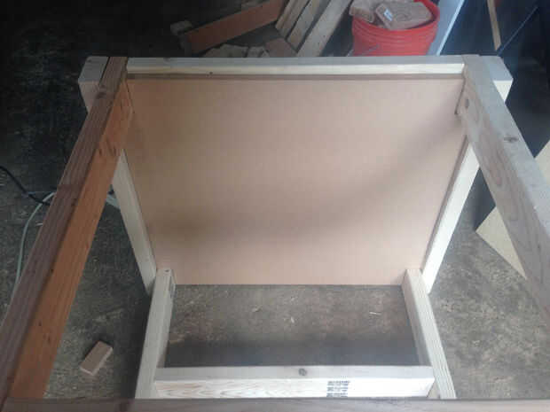 Una vez que se cortan las piezas laterales, usted necesitará muesca las cuatro esquinas para que puedan sentarse firmemente dentro del marco. El tamaño de estas muescas son 1,5 "x 3" (ver imagen arriba para diseño). Una vez cortadas, puede que necesite un martillo o mazo para golpear suavemente los paneles laterales en su lugar. Una vez allí, usted puede asegurar los paneles con tornillos para madera.