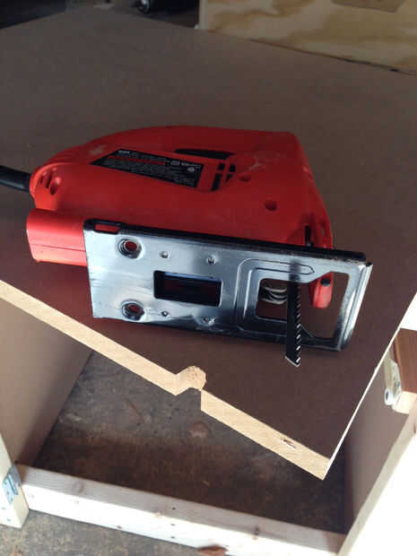 En cuanto a la parte inferior estante va, esto debe deslizarse fácilmente en su lugar entre los paneles laterales. Antes de fijar en lugar, considerar si desea instalar energía en su banco de trabajo. Si, puede ser ventajoso utilizar un rompecabezas a la muesca una pequeña ranura para el cable de un cable de extensión ahora antes de que se instale permanentemente su estante inferior (ver fotos arriba). No pienso hacerlo hasta un punto más en mi generación, por lo que sugiero hacerlo ahora.