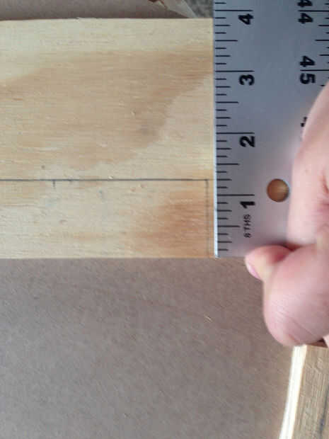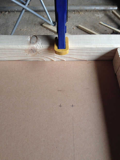 Quería a estos pernos en su lugar desde el exterior de los paneles laterales, así que necesitaba averiguar donde insertar mi tornillos. He decidido que 6 1/2" de la parte superior de mis costados era el lugar perfecto y esta marcado hacia fuera en el interior y exterior de los paneles laterales. Entonces, teniendo cuidado de medir varias veces, sujetan los postes hasta el interior de los paneles. Esto me permitirá perforar desde el exterior de los paneles de los postes de madera mientras sostiene en su lugar. Es una buena idea para hacer un nivel para asegurarse de que sus tacos se colocan perfectamente antes de perforar.