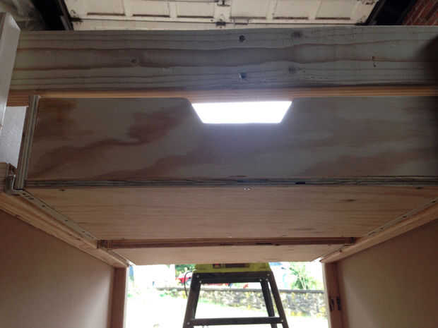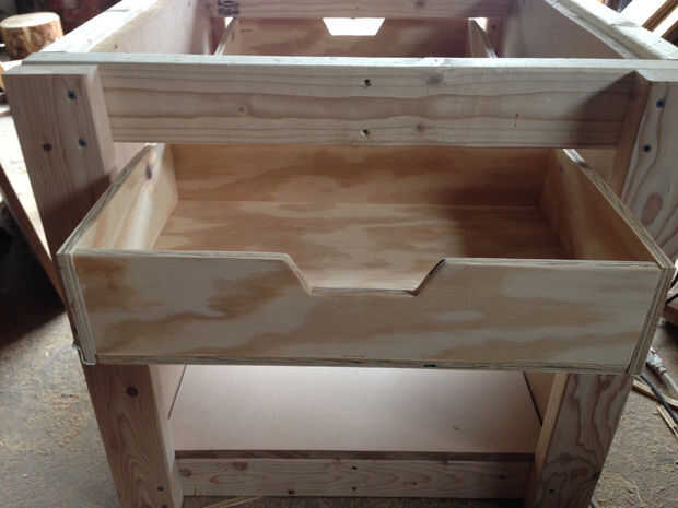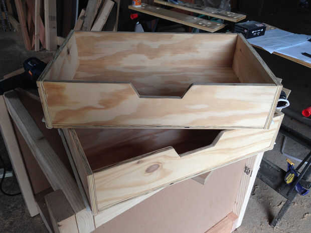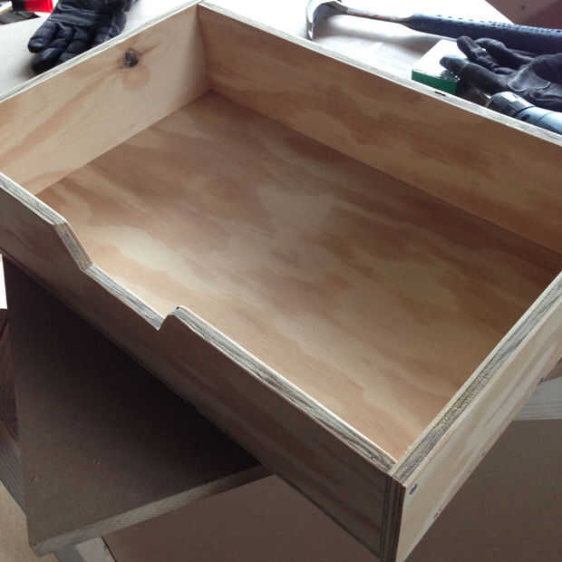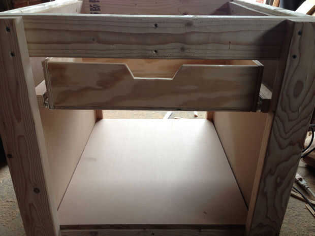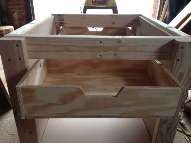 ¡Vale! Este es el punto donde cierra los ojos, cruzar los dedos y tratar de deslizar los cajones en su lugar... Mina encajan casi perfectamente - con un lado un poco más ajustado que el otro, pero totalmente usable. Si tienes un poco más de un espacio para sus cajones para adaptarse, puede quitar uno de los postes de madera, añadir una cuña delgada a lo largo del interior borde y vuelva a instalar. Si tus vigas están demasiado juntos y no te su cajón en el lugar en todo, puede utilizar una sierra de mesa al ajuste de unos pocos milímetros y vuelva a intentarlo. Que tuvo éxito y se inspiran para seguir adelante! Si no, una cerveza (o cuatro) y recoger nuevamente al día siguiente.