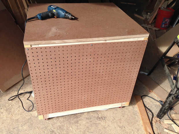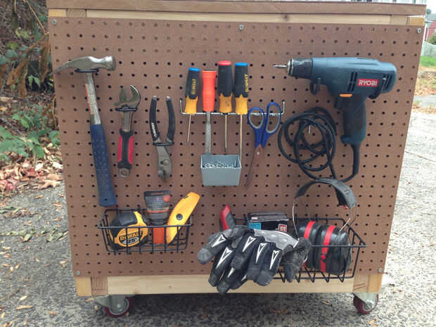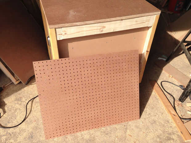 Hay unos pequeños que dejó hacer. La primera es fijar tu muro perforado al lado de UMW enfrente del estante lateral extensible. Cortar una hoja y 1/2 pulgada de 30 por 26"y utilizar unos tornillos para poner lugar. Ahora usted puede agregar cualquier pegboard montaje para organizar esto sin embargo le gustaría!