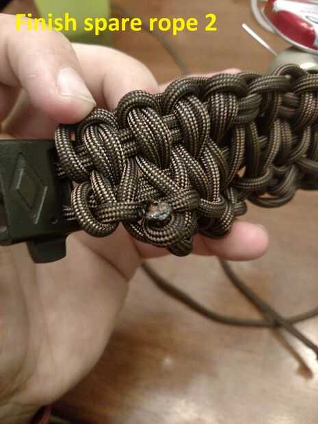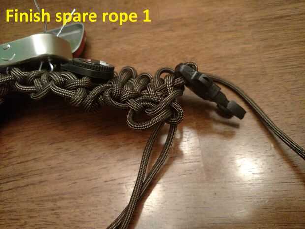 Para el cable de repuesto, en el último bucle en lugar de empujar a través de otro lazo, pasar el extremo libre todo y tire firmemente. Esto "fija" el nudo y mantiene de desentrañar. Cortar y fundir el final. Este es el final que utilizará wo Desconecte el cable de repuesto; simplemente saque el extremo del lazo, luego tire duro como una cremallera.