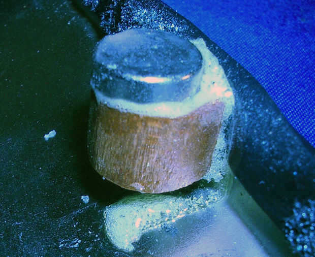 Primero pegué los imanes a las piezas de espiga. Más o menos quiere sujetar piezas con pegamento del gorila. Pero en este caso solo utilicé los otros imanes de neodimio en el otro lado de la pieza de espiga para actuar como un aparato de sujeción magnética (MCA). Deje que se seque durante 2 horas antes de continuar al siguiente paso. Repita este proceso para la segunda mitad de la NMCA. Si usted tiene un montón de imanes podría hacer ambas cosas al mismo tiempo.