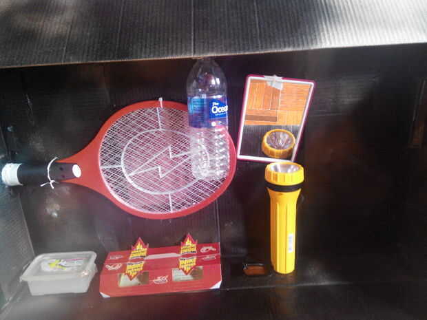 1 - colocar el espejo pequeño en su caja. ¿Que lado? Como pueden reflejar luces (ángulo correcto)... Luego conectar tu mini antorchas verticalmente arriba/abajo depende de su aditamento de espejo... Como refleja. Atraen otros insectos a la trampa para llamar la atención de nuestros Mr.Lizard.So que cuando consigue en la caja, Adios...