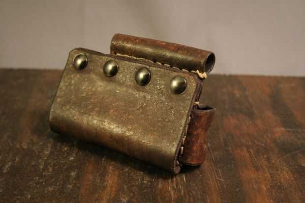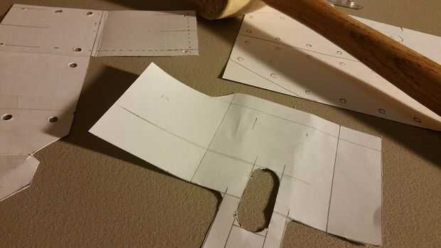 Al hacer este accesorio para mi banda, las cosas fueron un poco difíciles, sobre todo con la vaina de la herramienta multiusos. Una cosa altamente sugeriría al usar cuero o cualquier material de hecho, es la necesidad de hacer patrones! (Ver cuadro #7) Al hacer el sostenedor de herramienta multiusos, había un montón de pliegues, y tuve que averiguar exactamente cómo la vaina iba a ir juntos, donde los puntos iban a ser y lo más importante es el tamaño. No quiere cualquier tipo de correa o snap sosteniendo la herramienta multiusos en lugar porque quería permitir que sea accesible, rápido y fácil. Para ello, las medidas necesarias para ser exactos para que la herramienta multiusos se encajan perfectamente sin caerse al caminar, correr o saltar. Sólo lo que he podido hacer esta primera vez fue porque hice un patrón antes de tiempo.