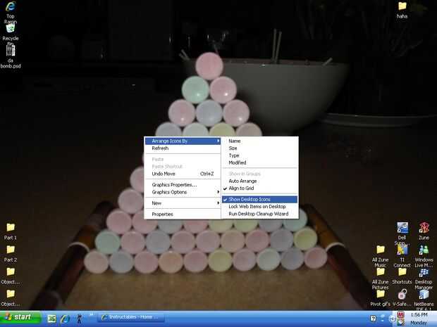 quitar iconos de la derecha haga clic en el fondo y luego ir a organizar iconos por...: muestra destop haga clic en los iconos que y mostrar todo ser hiden.