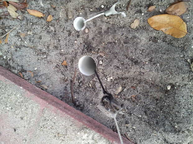Cuando estés listo para recuperar el alijo simplemente use un imán atado a una cadena. Baje el imán en el tubo principal, abrir la trampilla y mantenerla abierta. Cuando el cumplir con 2 imanes, tire de la cadena. Luego, tire la cadena con la bolsa adjunta y saque de su escondite.