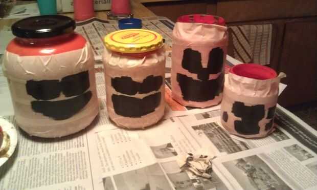 Aplicar una cantidad generosa de pintura negra sobre rostros enmascarados.